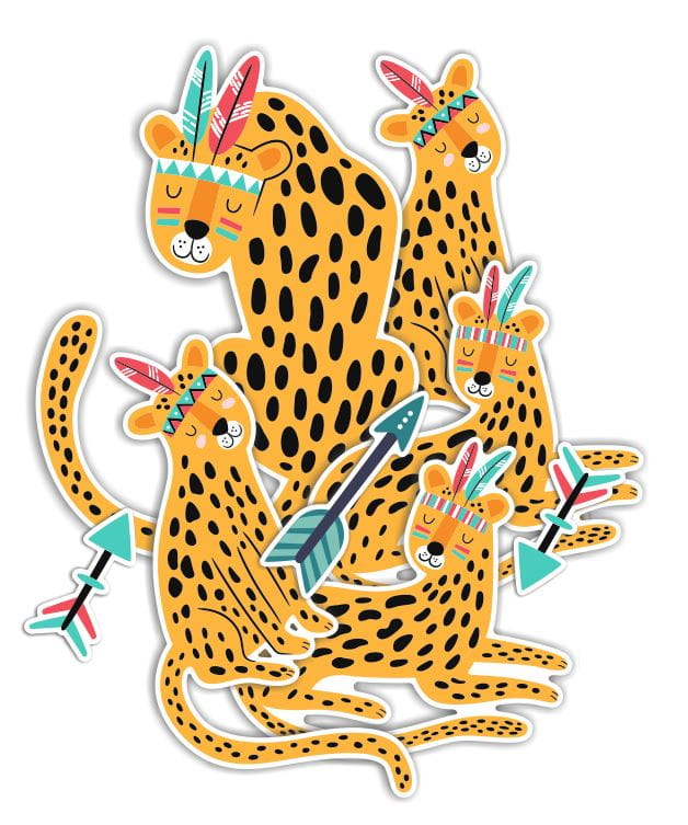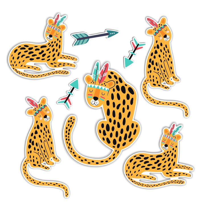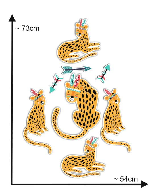 Zestaw zawiera wizerunki lampartów oraz strzał. Świetnie sprawdzi się jako niebanalna dekoracja do pokoju dziecięcego. Stworzy ona klimat w stylu Boho. Ozdobę możesz zawiesić w przeróżny sposób - stwórz własne kombinacje z zawartych w zestawie elementów i zmieniaj dowolnie ich kolejność.