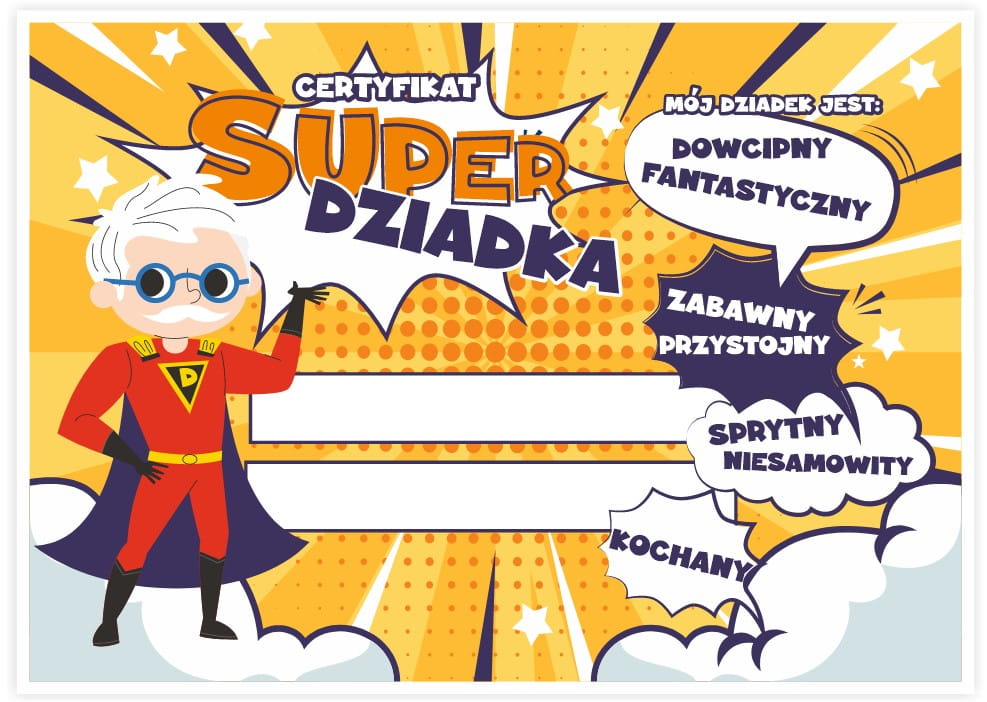 Chcemy naszymi produktami pomóc docenić wszystkich Dziadków, dlatego stworzyliśmy dyplomy specjalnie na tę okazję.