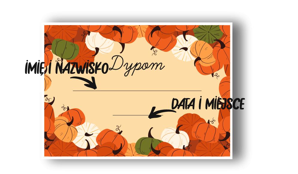 Ten dyplom będzie idealnym prezentem do wręczenia dziecku w zabawie jesiennej lub konkursie. Nie może go zabraknąć podczas przygotowywania zabawy jesiennej.