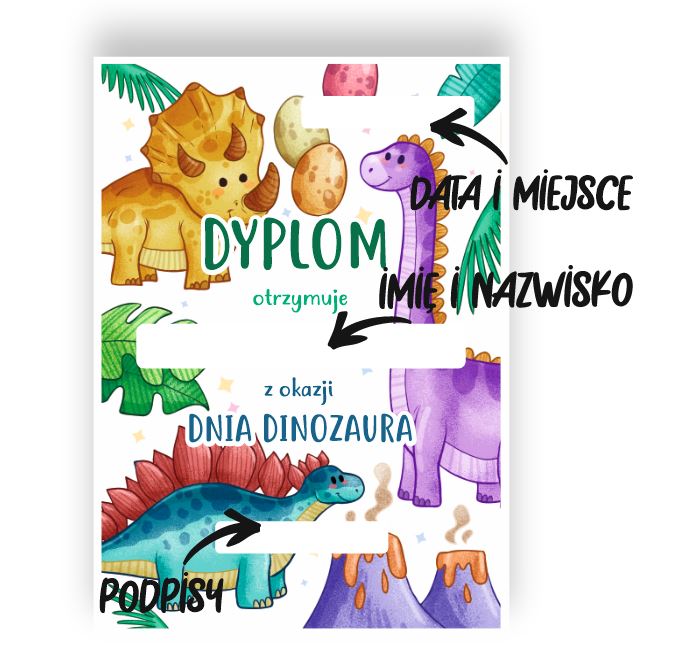 Wyjątkowy dyplom "Dzień Dinozaura" wykonany przez ZRB Intergo.