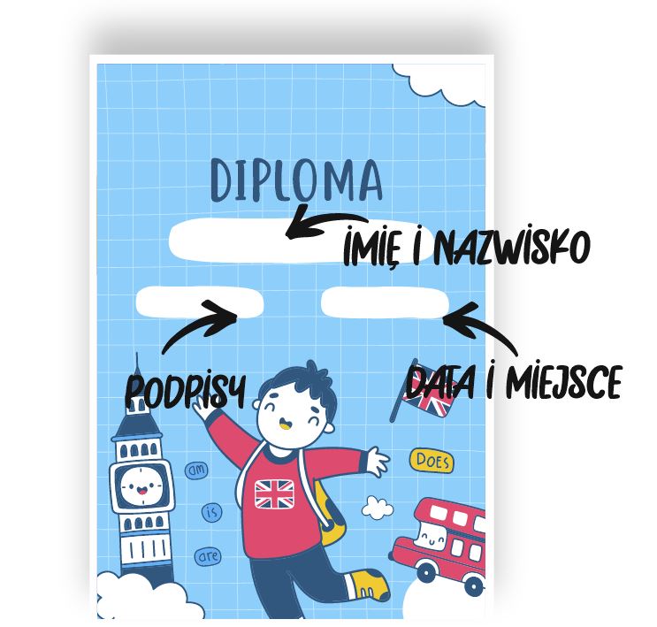 Nasze dyplomy drukujemy w wersji do wypełnienia ręcznego - w wykropkowanych polach można wpisać miejscowość, datę oraz imię i nazwisko nagrodzonej osoby. Aby zamówić dyplomy w takiej wersji wystarczy po prostu dodać dany dyplom do koszyka.
