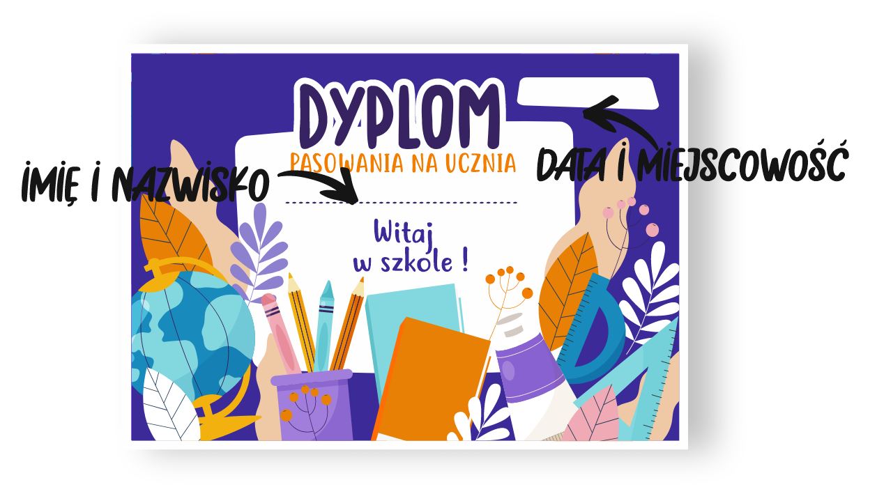 Nasze dyplomy drukujemy w wersji do wypełnienia ręcznego - w wykropkowanych polach można wpisać miejscowość, datę oraz imię i nazwisko nagrodzonej osoby. Aby zamówić dyplomy w takiej wersji wystarczy po prostu dodać dany dyplom do koszyka.