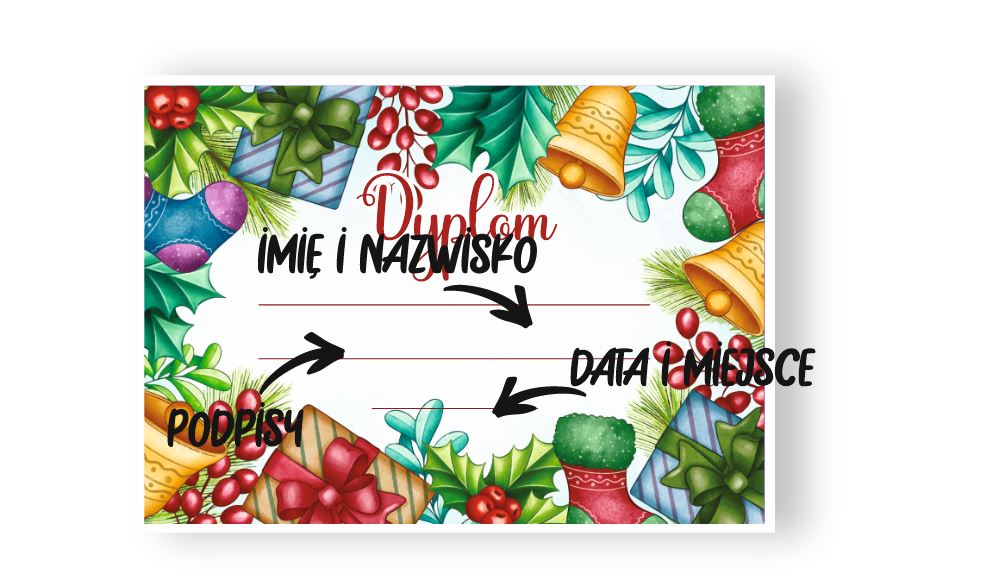 Dyplom wykonany przez ZRB Intergo, będzie idealnym prezentem do wręczenia dziecku w zabawie świątecznej.