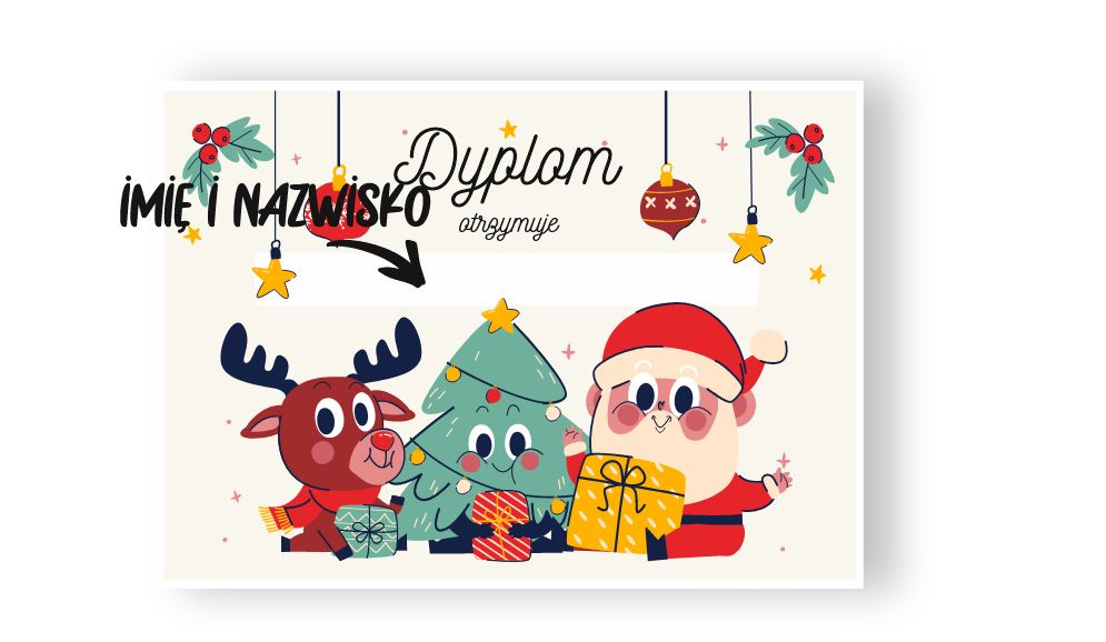 Dyplom wykonany przez ZRB Intergo, będzie idealnym prezentem do wręczenia dziecku w zabawie świątecznej.