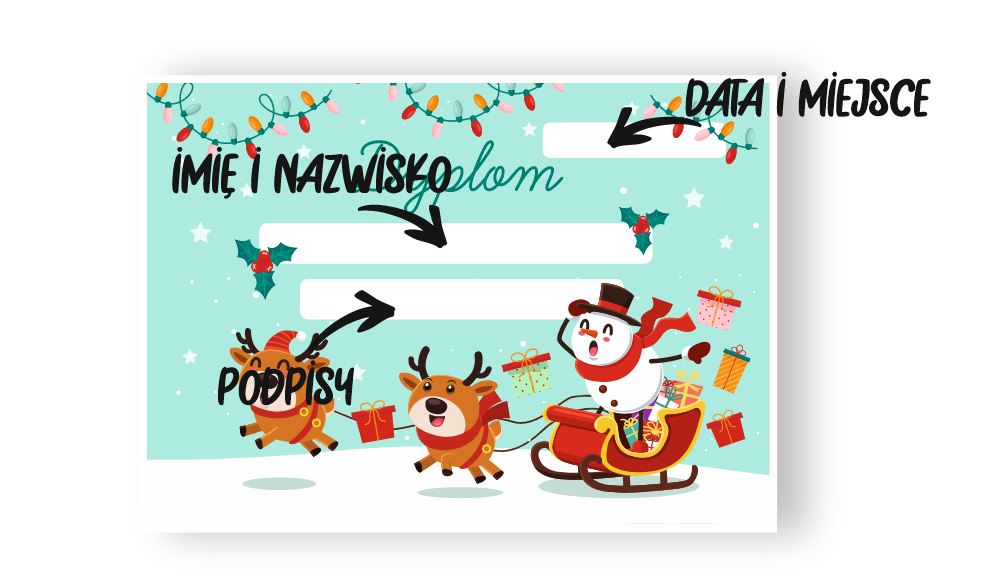 Dyplom wykonany przez ZRB Intergo, będzie idealnym prezentem do wręczenia dziecku w zabawie świątecznej.