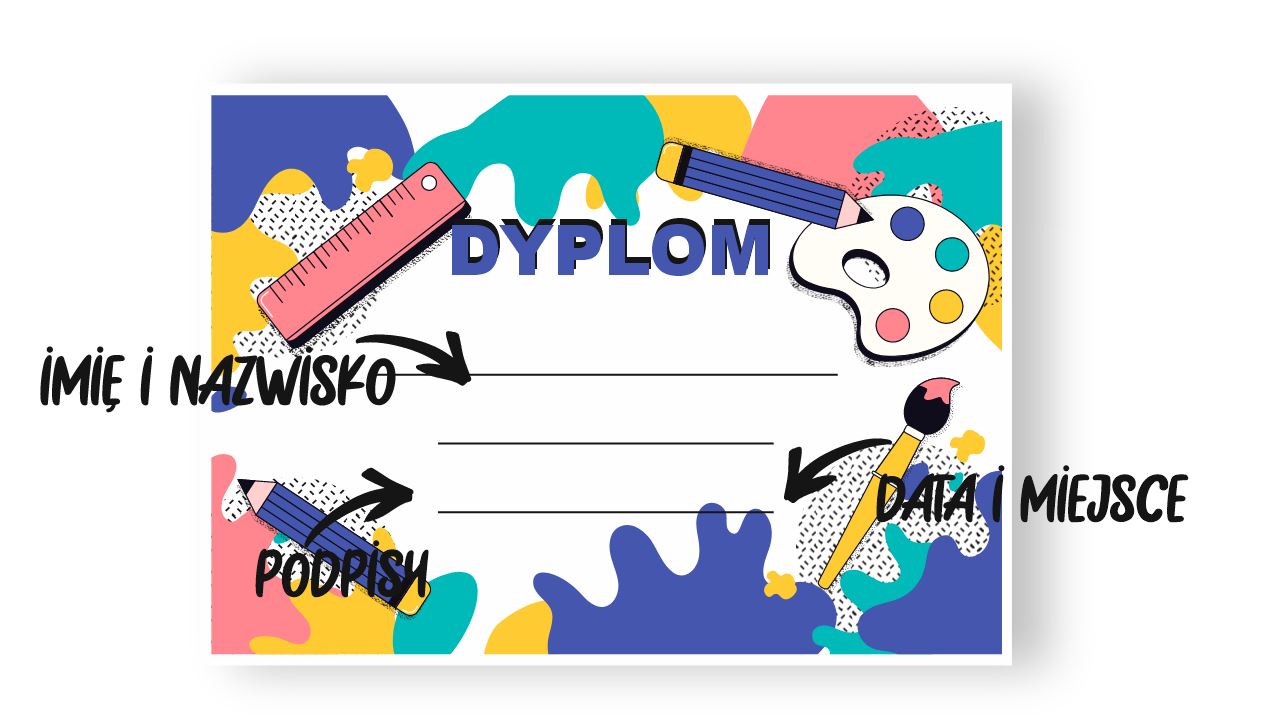 Nasze dyplomy drukujemy w wersji do wypełnienia ręcznego - w wykropkowanych polach można wpisać miejscowość, datę oraz imię i nazwisko nagrodzonej osoby. Aby zamówić dyplomy w takiej wersji wystarczy po prostu dodać dany dyplom do koszyka.