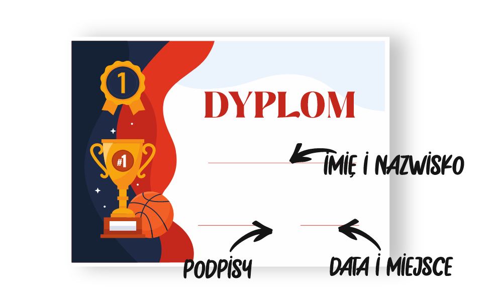 Nasze dyplomy drukujemy w wersji do wypełnienia ręcznego - w wykropkowanych polach można wpisać miejscowość, datę oraz imię i nazwisko nagrodzonej osoby. Aby zamówić dyplomy w takiej wersji wystarczy po prostu dodać dany dyplom do koszyka.