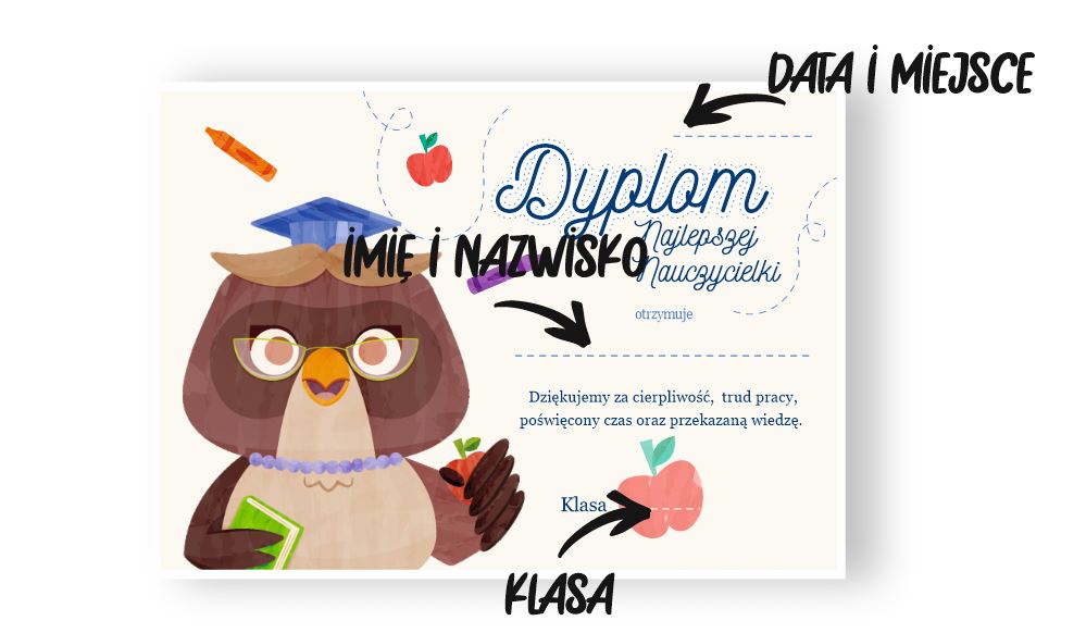 Dyplom na Dzień Nauczyciela "Mądra Sowa"