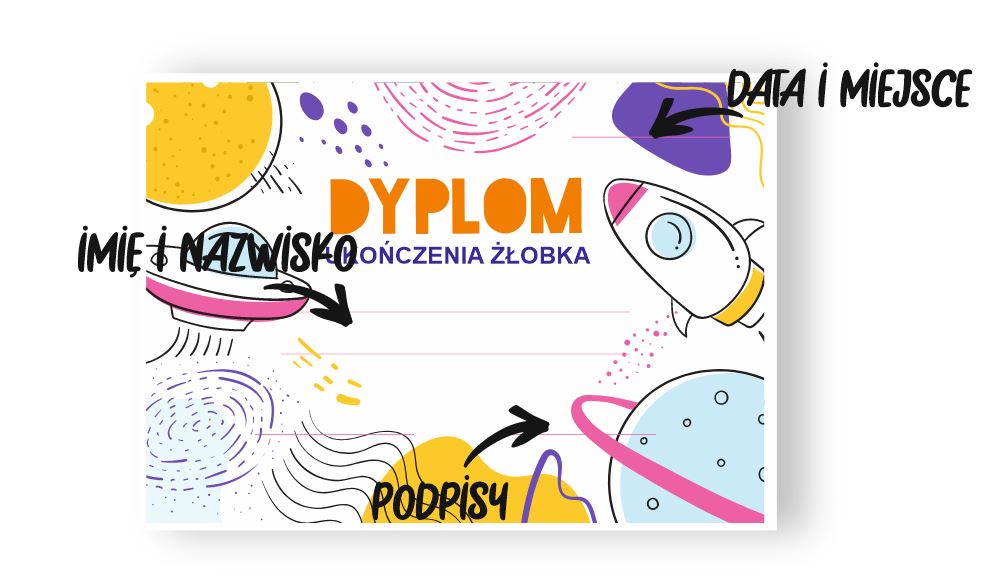 Nasze dyplomy drukujemy w wersji do wypełnienia ręcznego - w wykropkowanych polach można wpisać miejscowość, datę oraz imię i nazwisko nagrodzonej osoby. Aby zamówić dyplomy w takiej wersji wystarczy po prostu dodać dany dyplom do koszyka.