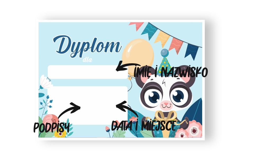 Upewniliśmy się, że dyplom jest łatwa w użyciu. Wystarczy wpisać w wykropkowane miejsce imię obdarowanej osoby. Ten produkt sprawi, że dziecko poczuje się wyjątkowo, a dawanie go będzie również świetną zabawą.