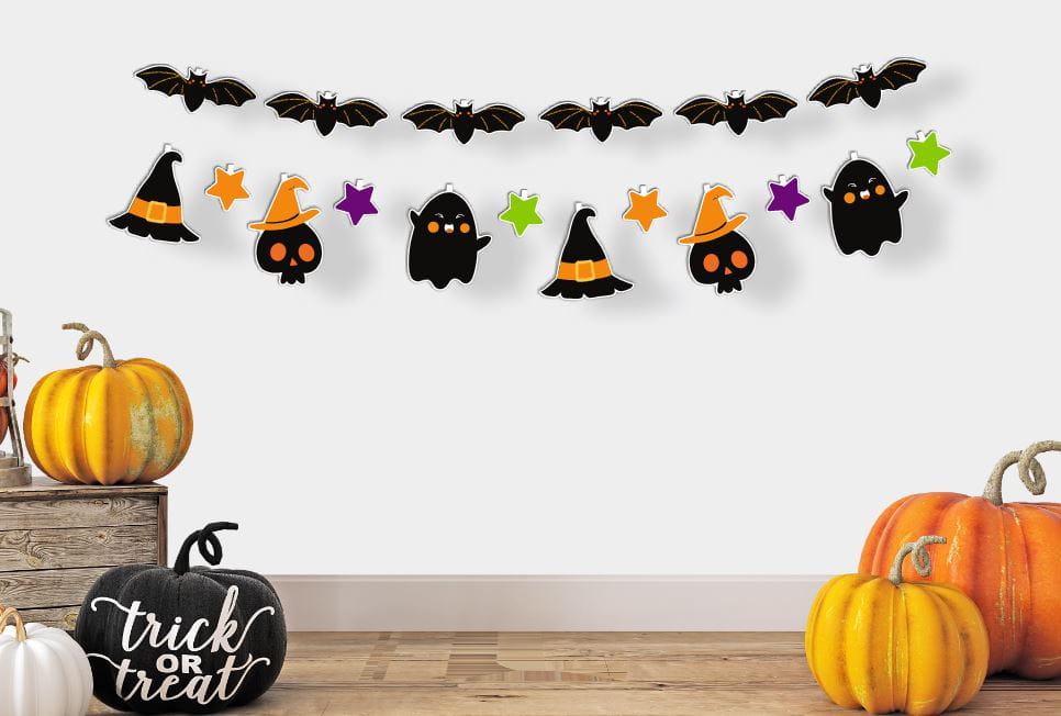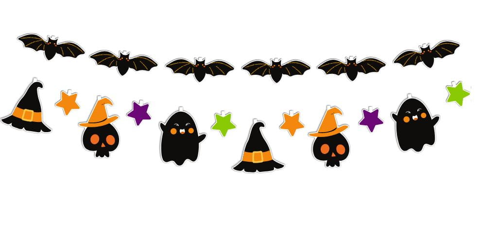 Stwórz klimat w stylu Halloween. Girlandę możesz zawiesić w przeróżny sposób - stwórz własne kombinacje z zawartych w zestawie elementów i zmieniaj dowolnie ich kolejność. Możesz udekorować nią stół, ściany lub użyć do prezentów. Świetnie sprawdzi się jako szybka i niebanalna dekoracja na przyjęciu Halloween.