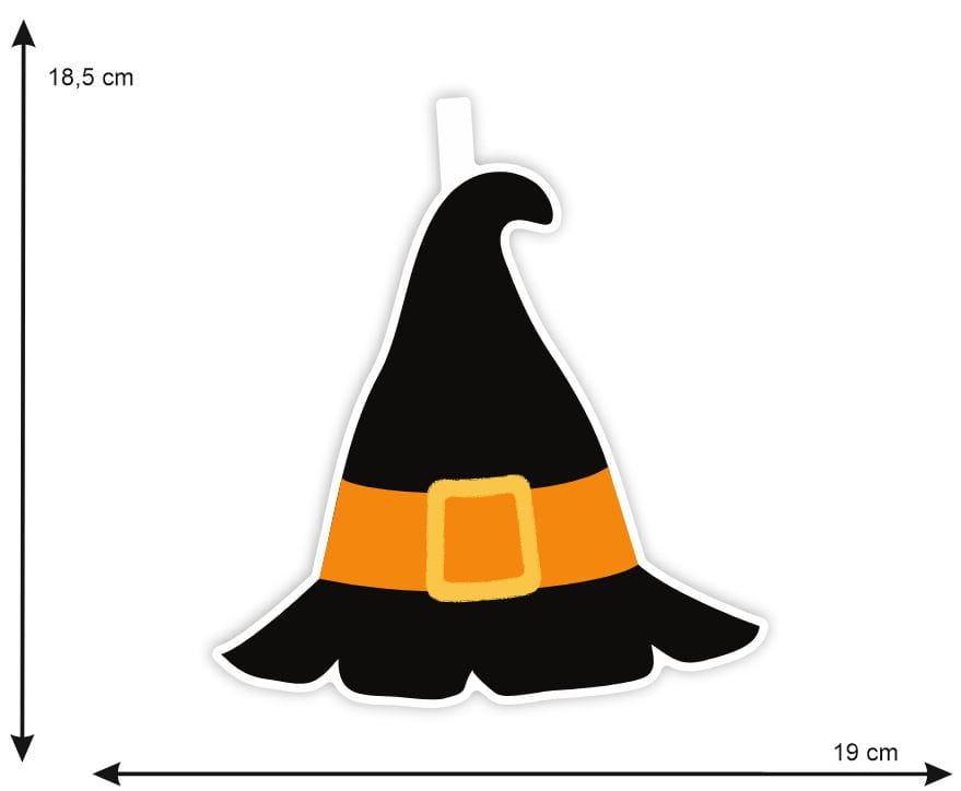 Zestaw zawiera 18 flag z wizerunkami: czapki czarownicy, ducha, nietoperza, czaszki oraz gwiazdek.