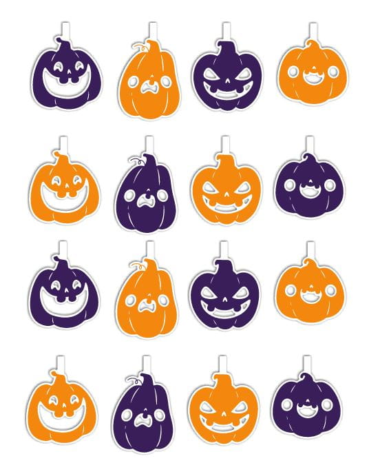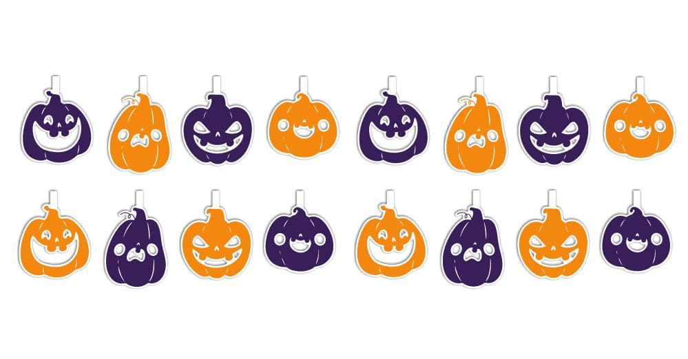 Zestaw zawiera 16 flag z wizerunkami dyń.