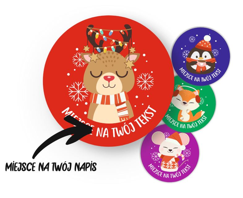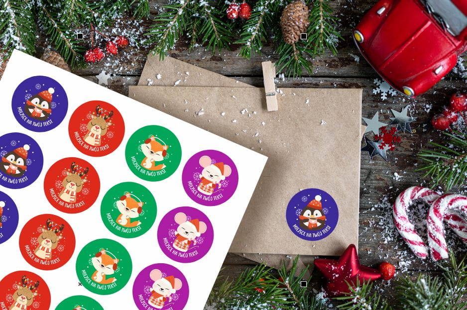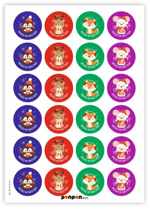 Naklejki Świąteczne "Zwierzątka Mix" (24 szt. na arkuszu A4)
