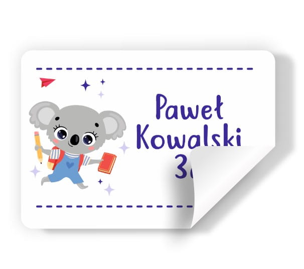 Naklejki imienne na zeszyt/książkę "Koala szkoła"