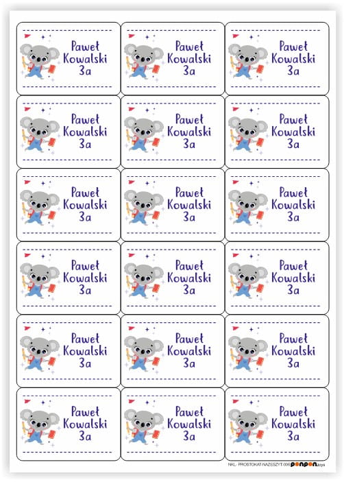 Naklejki imienne na zeszyt/książkę "Koala szkoła" 18 naklejek
