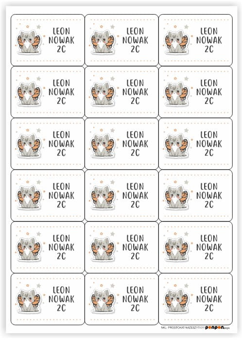 Naklejki imienne na zeszyt/książkę "Kotek" 18 naklejek