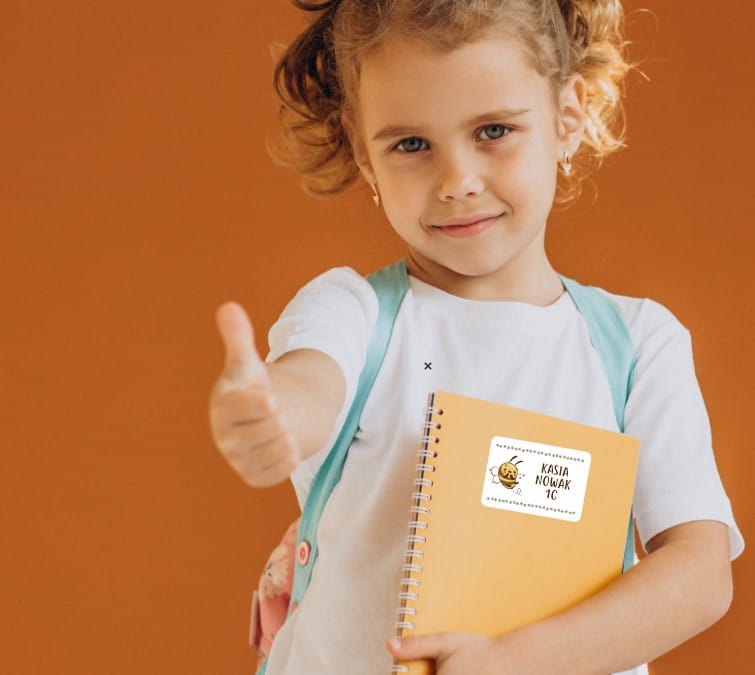 Nasze naklejki drukujemy w wersji personalizowanej. Aby zamówić naklejki w takiej wersji wystarczy po prostu wpisać w polu tekstowym imię, nazwisko oraz klasę/grupę (0,00 zł) i dodać dany produkt do koszyka.