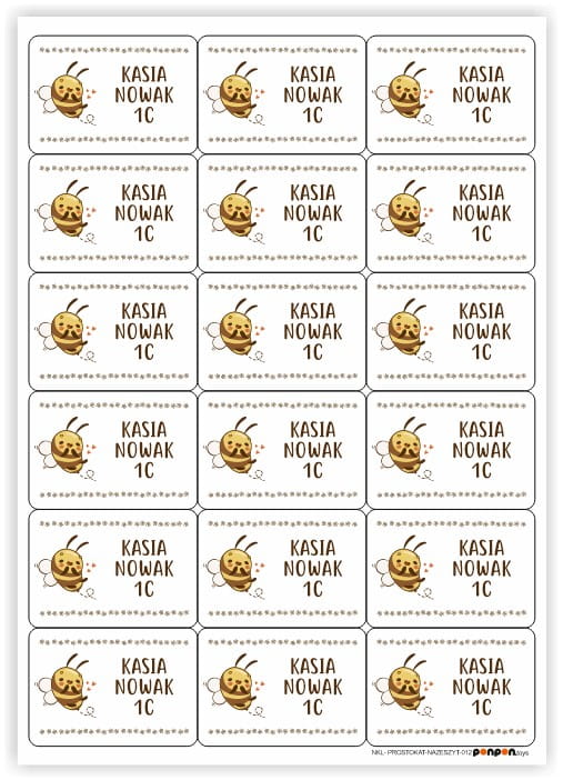 Naklejki imienne na zeszyt/książkę "Pszczółka" 18 naklejek