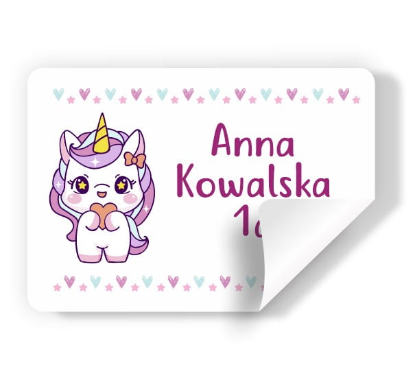 Naklejki imienne na zeszyt/książkę "Unicorn"