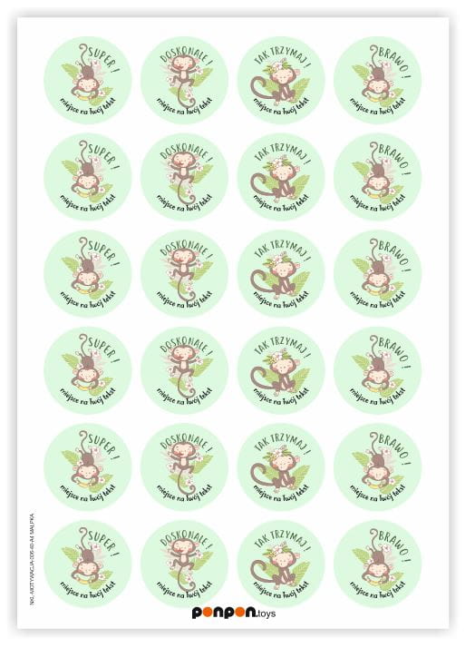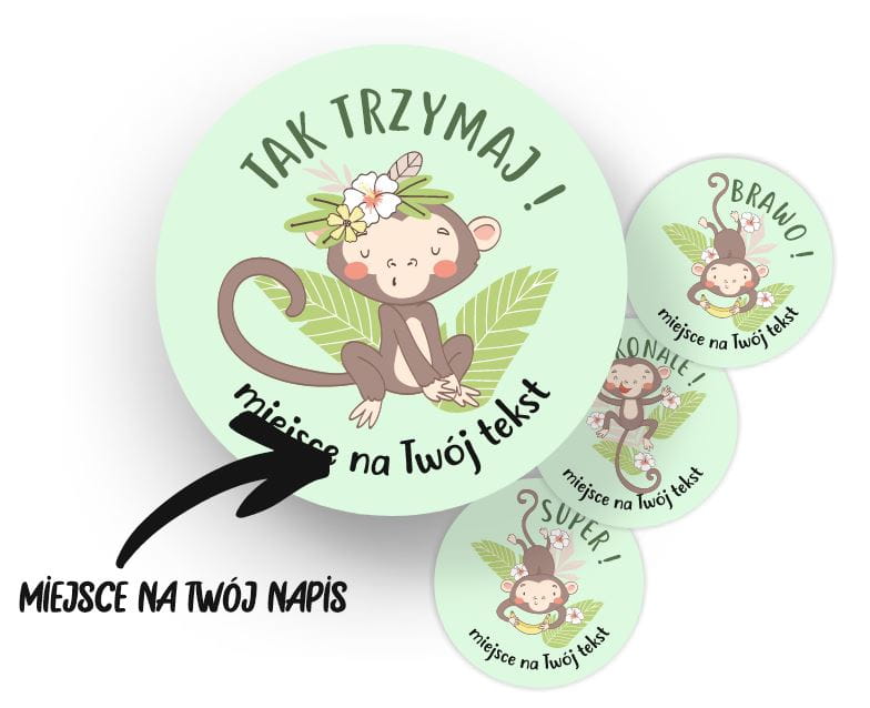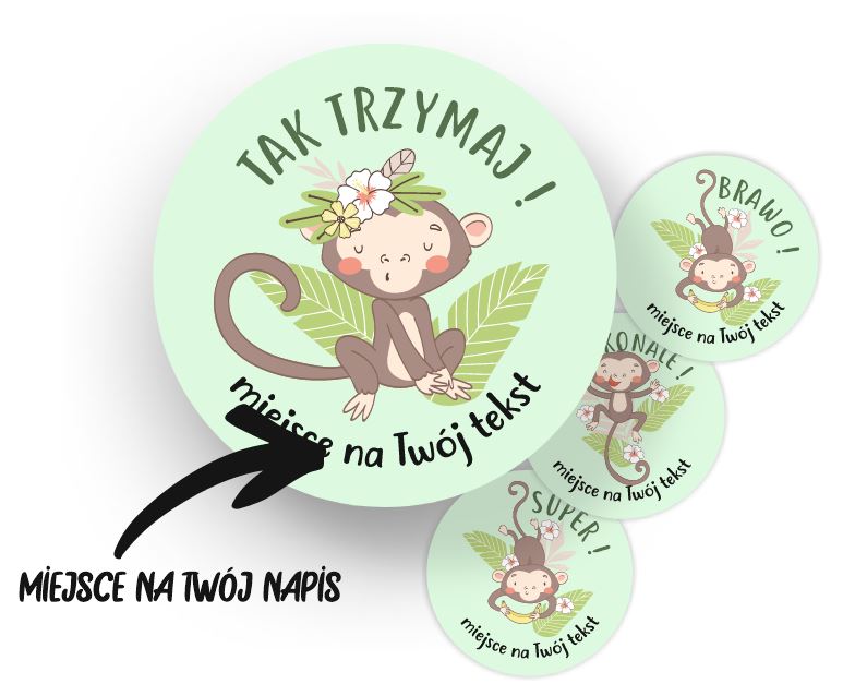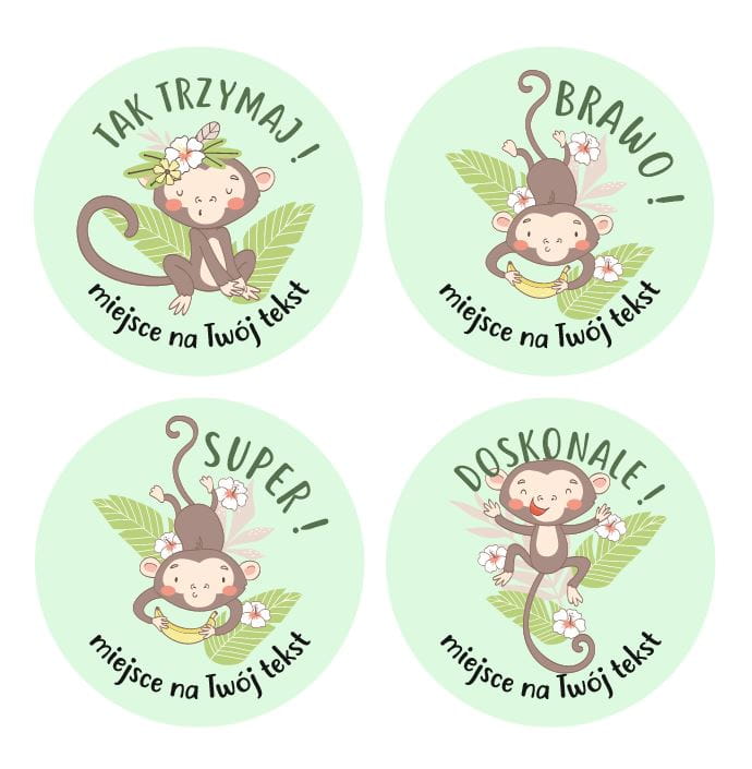 Naklejki szkolne, motywacyjne - "Małpki" (120 naklejek) + personalizacja