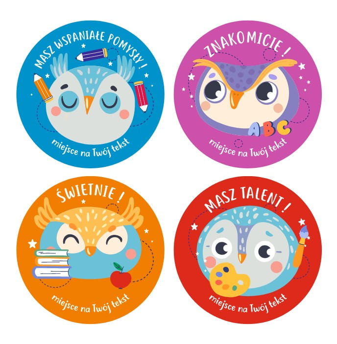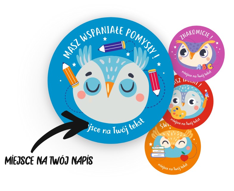 Naklejki szkolne, motywacyjne - "Sowy" (120 naklejek) + personalizacja