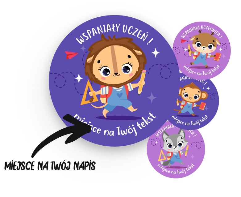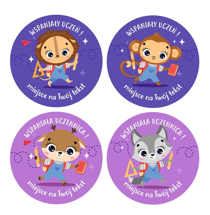 Naklejki szkolne, motywacyjne - szkolne zwierzaczki + personalizacja