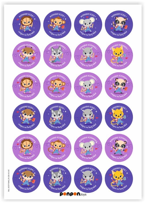 Idealne sprawdzą się jako nagroda za dobrze zrobione zadanie domowe lub za aktywność w zajęciach szkolnych. Możesz wkleić je do zeszyt lub na kartę pochwał dziecka. Na naklejkach widnieją motywujące hasła np. "Wspaniały Uczeń !" "Wspaniała Uczennica !" oraz ciekawa i zabawna grafika.