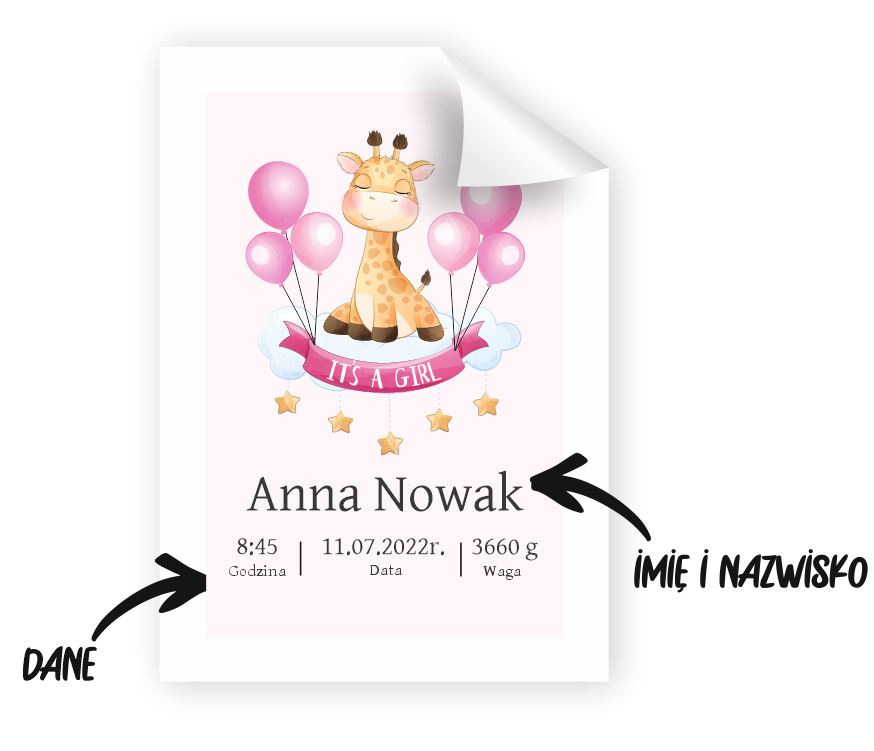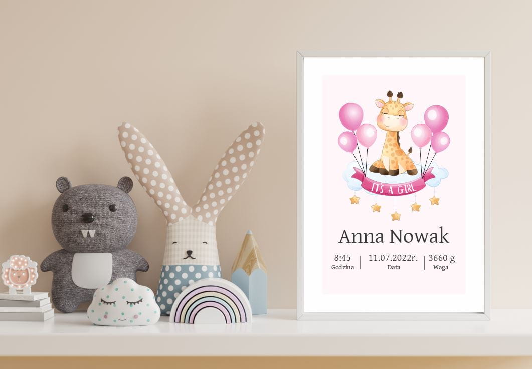Plakat na Narodziny Dziecka - Żyrafka Girl