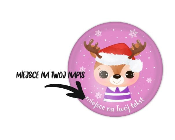 Przypinka świąteczna "Jelonek Różowy" + personalizacja