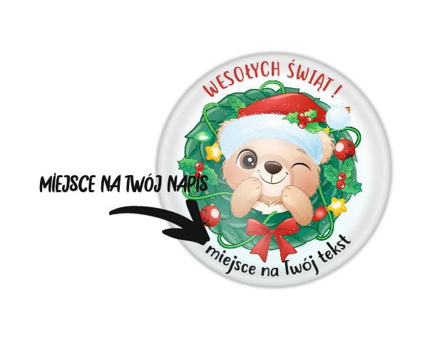 Przypinka świąteczna "Słodki Miś" + personalizacja