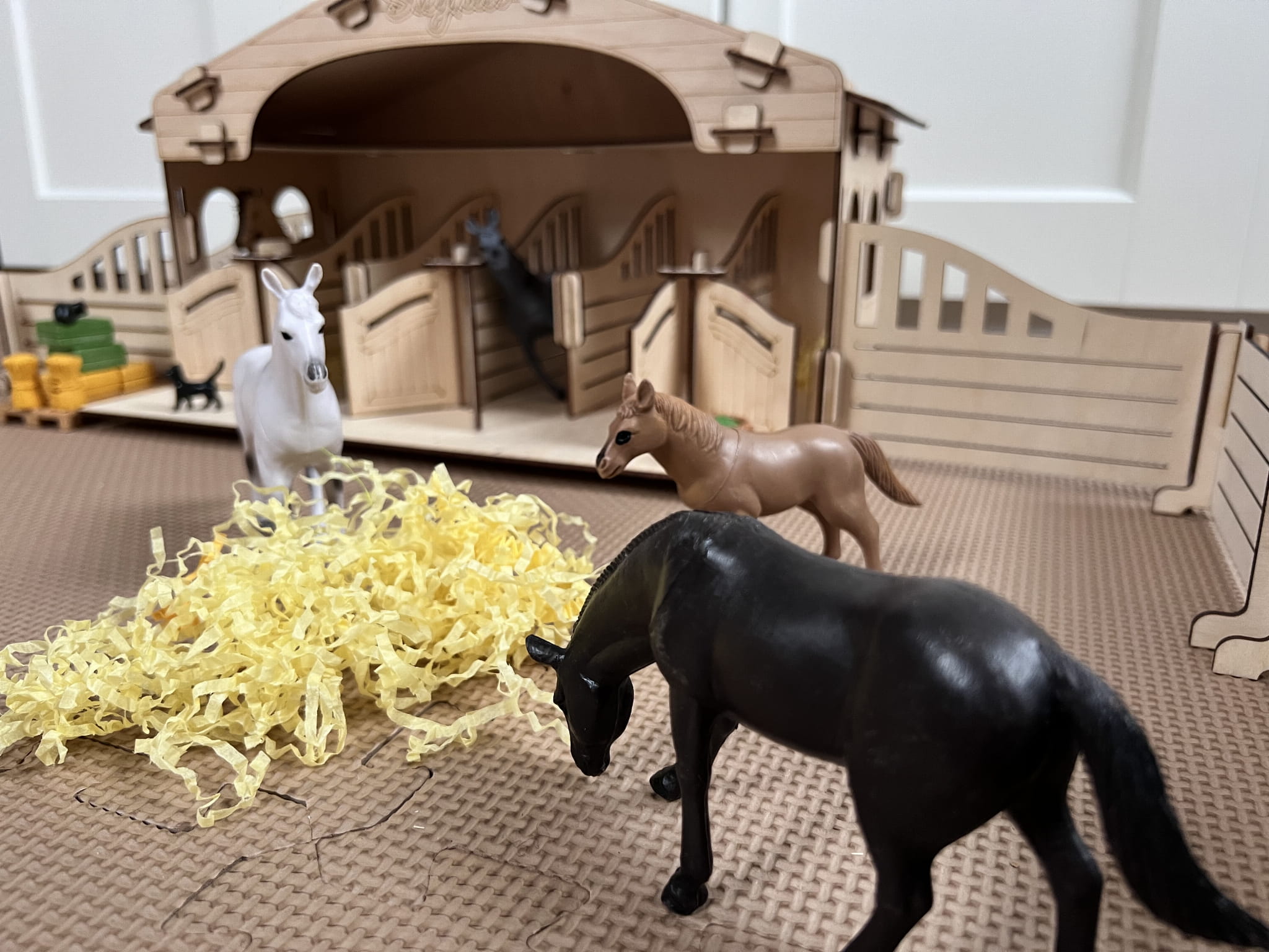 Uwaga – koniki typu Schleich widoczne na zdjęciach nie wchodzą w skład zestawu. Aukcja dotyczy tylko stajni