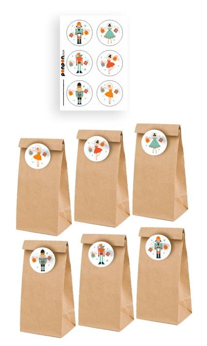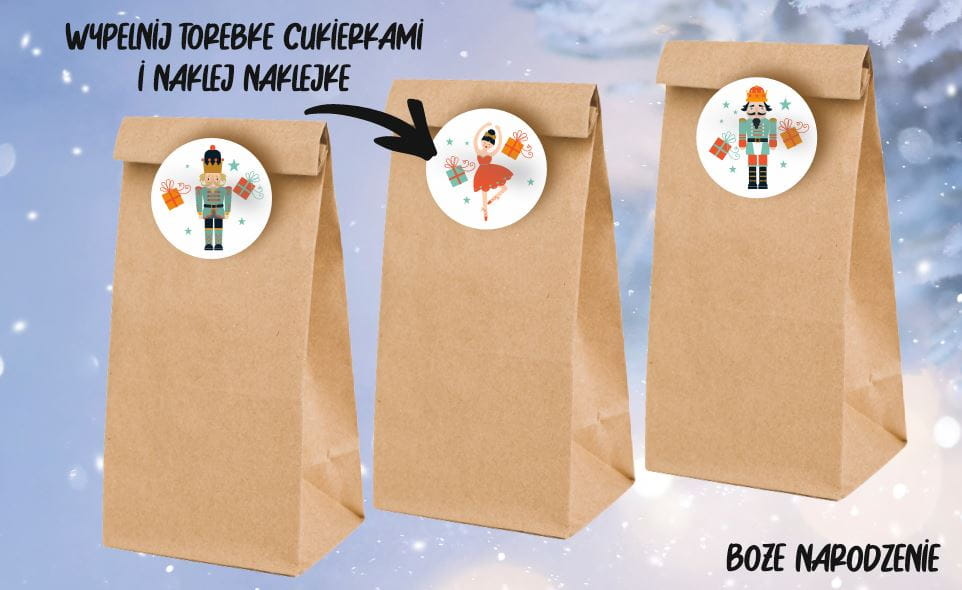 Torebki Papierowe na Słodycze + 6 naklejek - "Dziadek do orzechów"