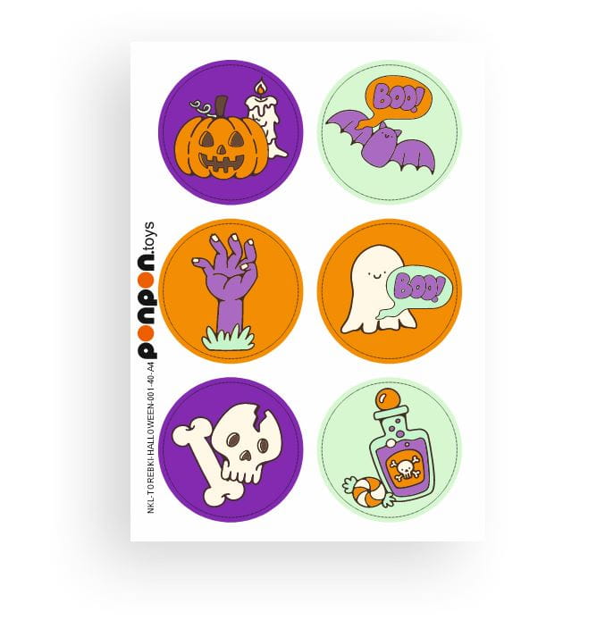 Kolorowe naklejki Halloween z możliwością personalizacji. Idealne za zabawę Halloween.
