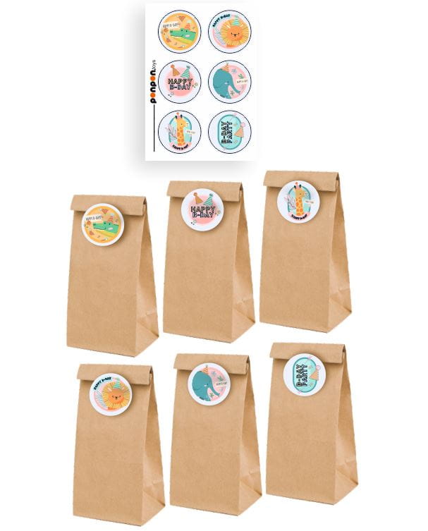 Torebki papierowe na słodycze + 6 naklejek - "B-day party"